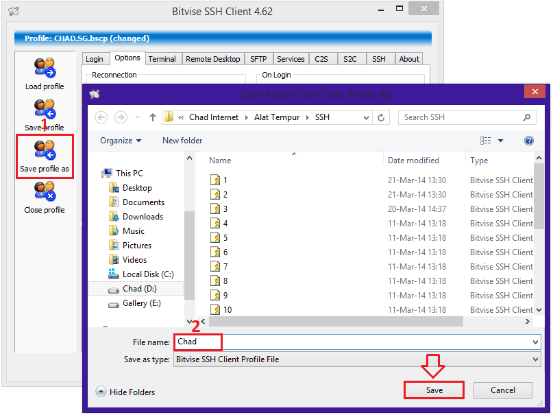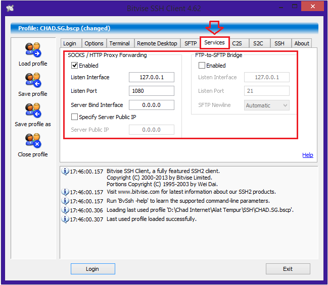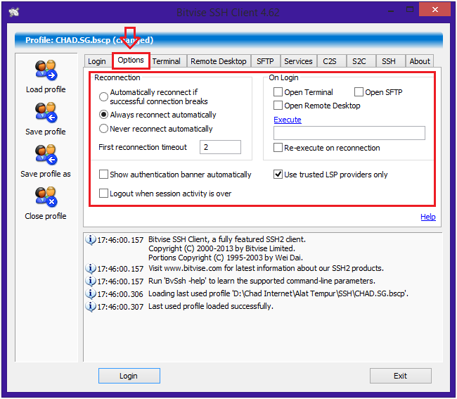 7. Terakhir agan KLIK Save Profile agar nanti pas buka bitvise udah tinggal langsung Login aja gak usah Load Profile lagi.