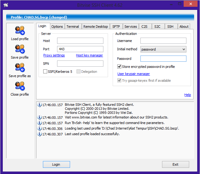 1. Setelah agan buka aplikasi Bitvise SSH Client akan tampil seperti gambar dibawah ini.