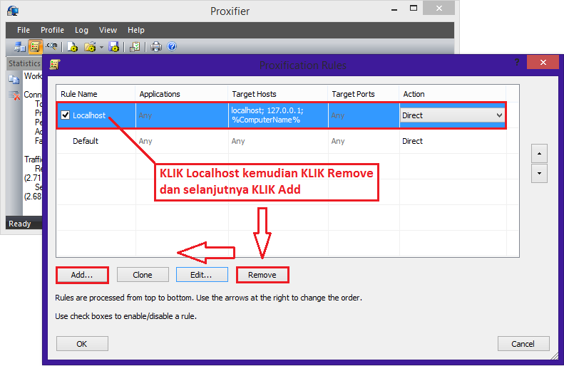 9. Langkah selanjutnya klik Localhost dan klik Remove (hapus). Setelah itu agan klik Add.