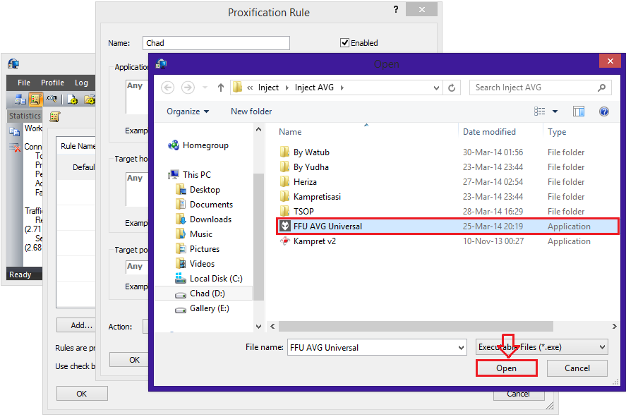 11. Langkah selanjutnya agan akan dibawa ke jendela Explorer atau tempet dimana agan menyimpan file. Kemudian agan cari dimana inject yang akan agan gunakan. Setelah ketemu, agan pilih inject tersebut kemudian klik Open.
