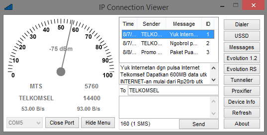 Berbeda dengan versi sebelumnya IP Connection Viewer Pro yang sering disebut (IPCV Pro) ini dilengkapi fitur pada nomor 8 (Send and Receive Messages) jadi gak repot lagi kalo kita pengen SMS atau juga baca SMS yang masuk.